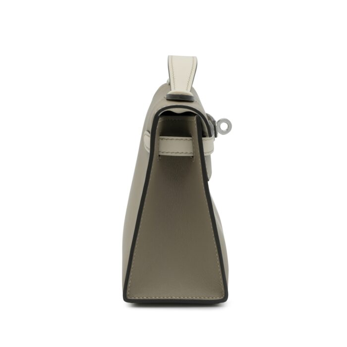 Hermès Gris Asphalt and Beton Swift HSS Kelly Pochette Palladium Hardware, 2024. The interior is lined with Beton leather. Includes dust bag and box. This item is final sale and not eligible for return