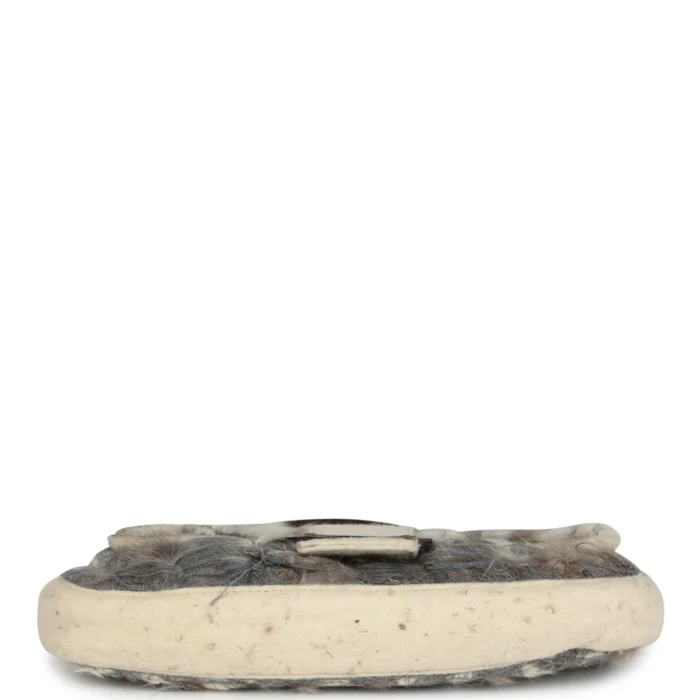 Vintage Fendi Baguette Ivory Felt & Grey Rabbit Fur