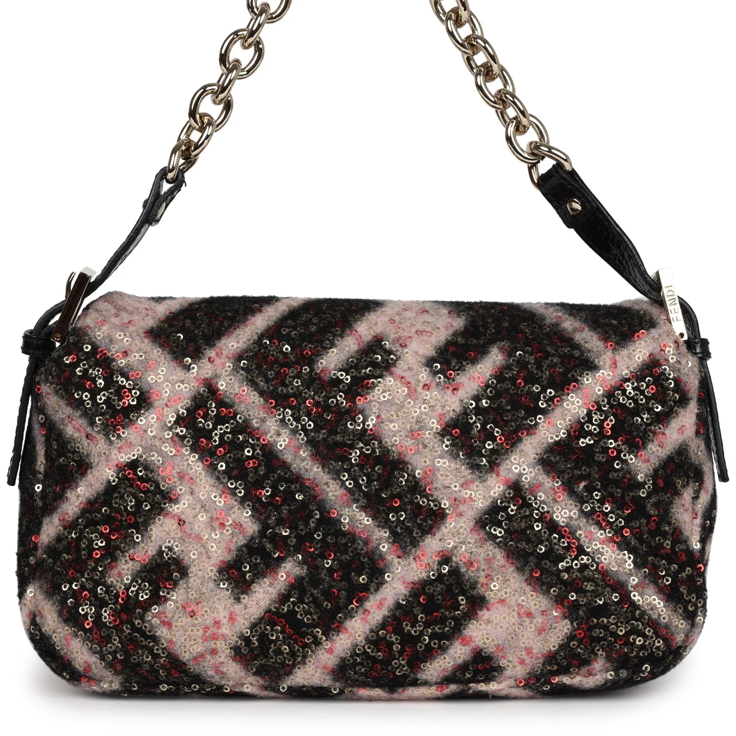 Vintage Fendi Pink & Black Wool Zucca Shoulder Bag with Sequins
